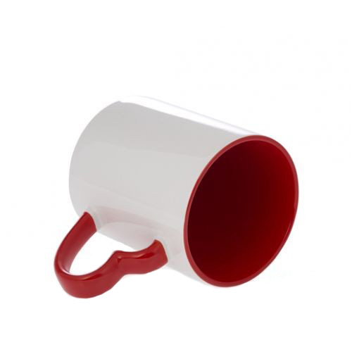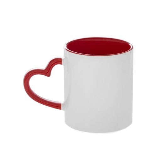 Белая керамическая кружка с красной фигурной ручкой "сердце" и красная внутри. Яркое решение!