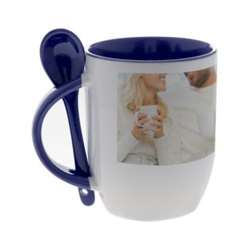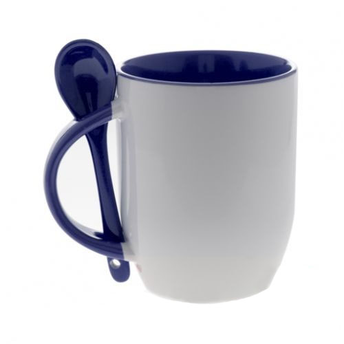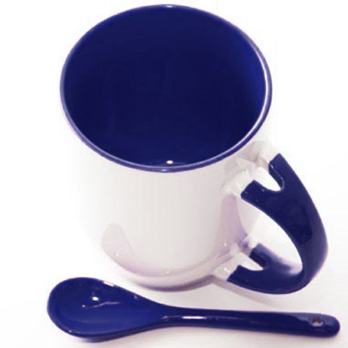 Стильная кружка, ручка, внутренняя поверхность и ложка синии.